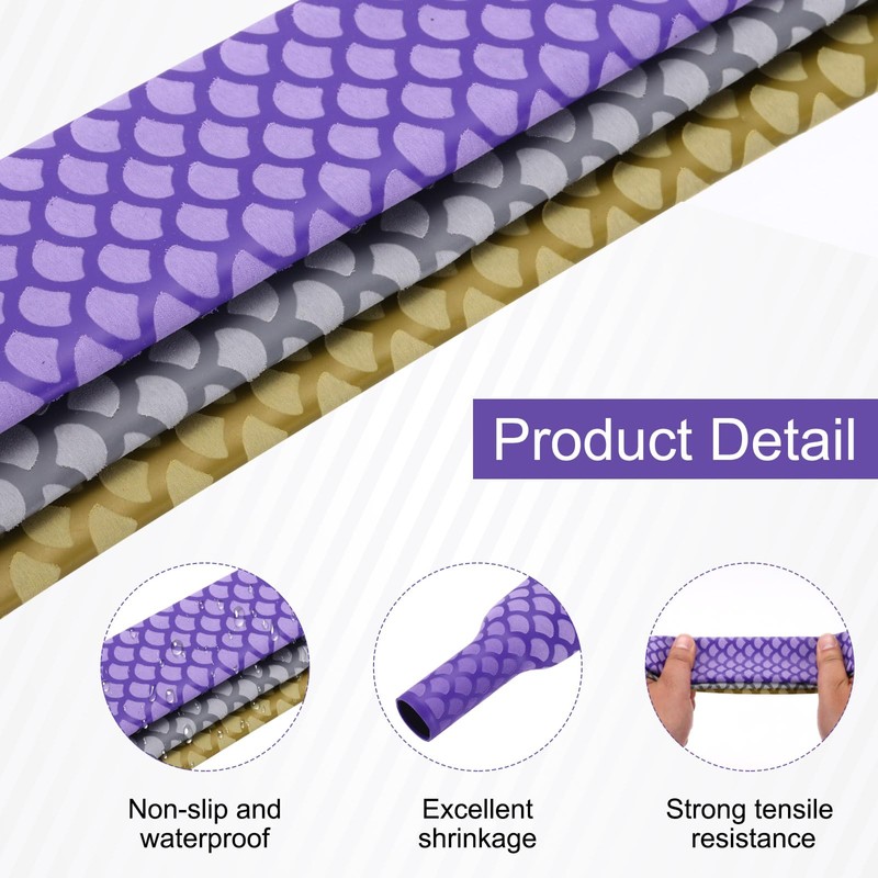 MECCANIXITY 5PCS 3.3ft Heat Shrink Tubing for Fishing Rods, 1.8:1 Fish Scale Pattern Heat Shrink Wrap Handle Rod Grip with Anti-Slip Waterproof Insulation (Dia: 30mm, Purple)