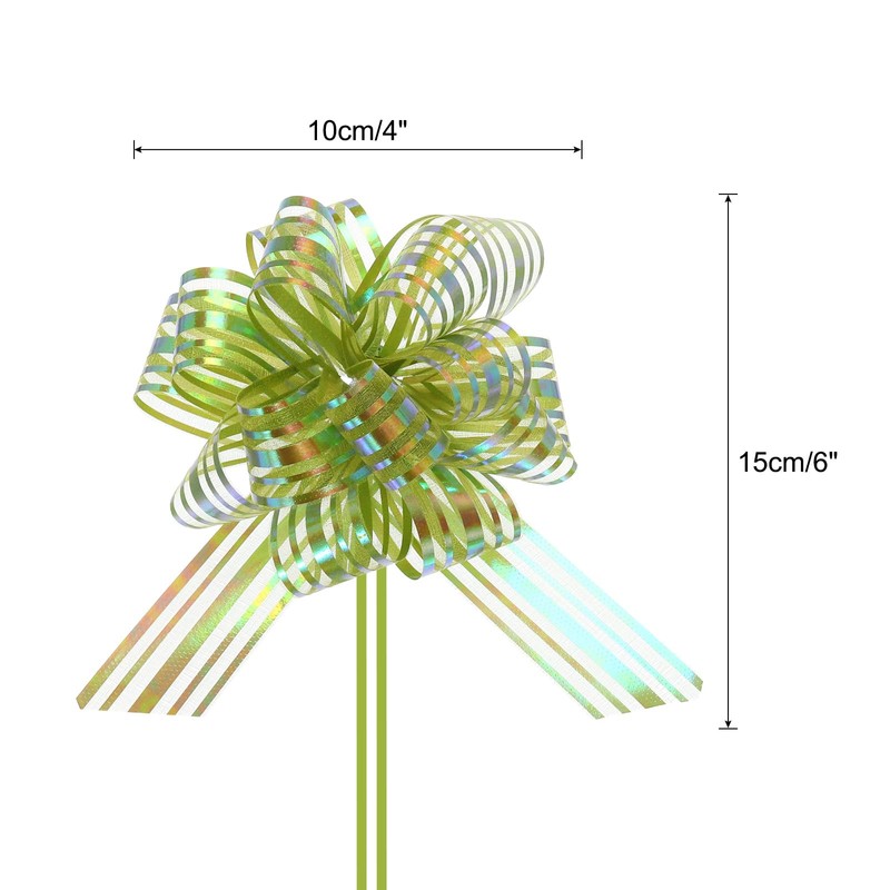 MECCANIXITY 5pcs 4 Inch Organza Large Pull Bow Metallic Gift Wrapping Bows Ribbon Chiffon Yarn Lawn Green for Wedding Baskets Presents Christmas Valentine's Day