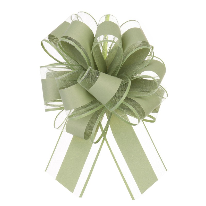 MECCANIXITY 5pcs 6 Inch Large Big Pull Bow Organza Gift Wrapping Bows Ribbon for Wedding Car Baskets Presents Christmas Bow, Army Green