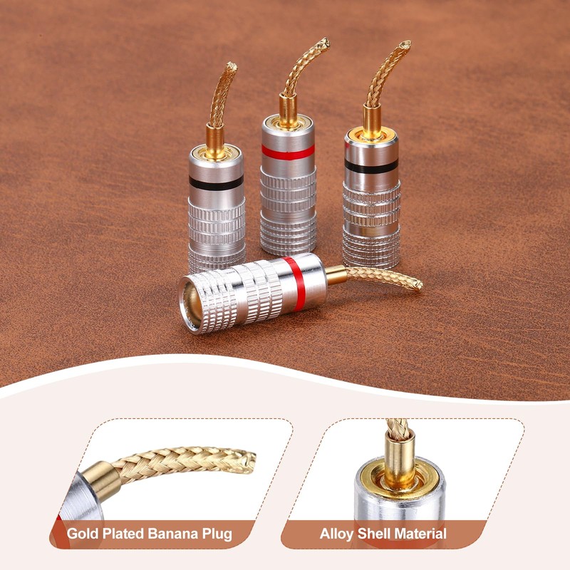 - This flex pin banana plug is designed for audio connections, audio cable production. The jack connector making this plug very suitable for creating cables of varying lengths, allowing it for versatile connectivity options, such as spring terminal connectors, speaker wires, home theater, and other audio equipment.