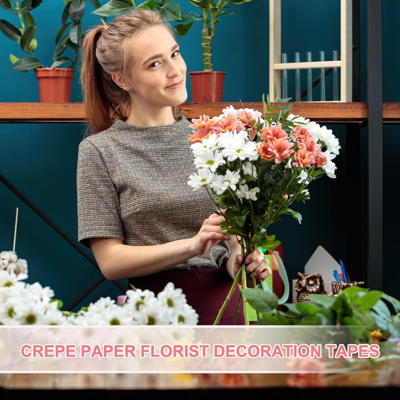 Floral Tapes are great for wrapping stems, crafting paper flowers, securing bouquets, or repairing artificial plants. Suitable for flower arrangement, wedding decoration, bouquet wrapping, corsage making, DIY crafts, gift wrapping, DIY scrapbooking
