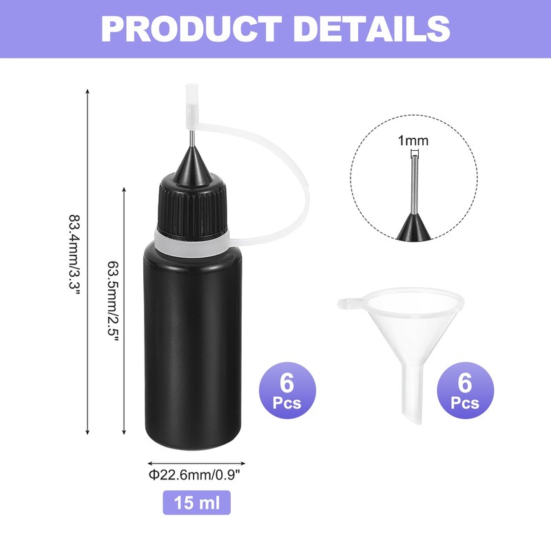 MECCANIXITY 6Pcs Needle Tip Squeeze Bottle, 15ml/0.5oz Glue Tip Applicator Bottles Plastic Liquid Glue Bottle for Paper Crafts, Painting, Oil, Ink(Black, with 6 Funnel)