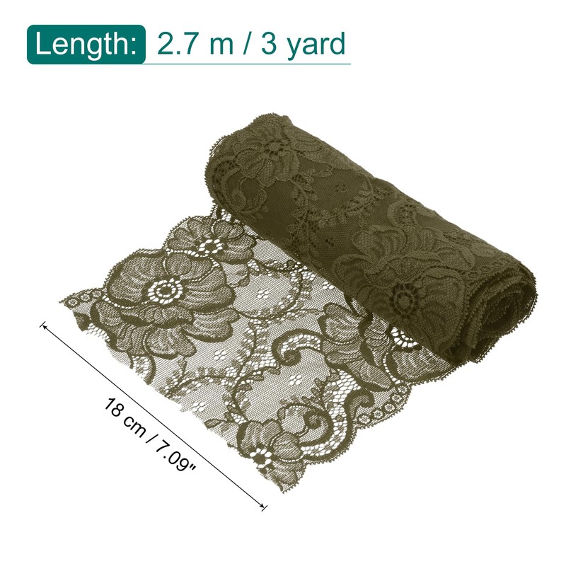 - Color: Olive Green;Material: polyester;Size: 7.09 inch x 3 Yard (W*L)According to the length you need, cut the lace with scissors, and then you can use this lace to decorate or wrap the item
