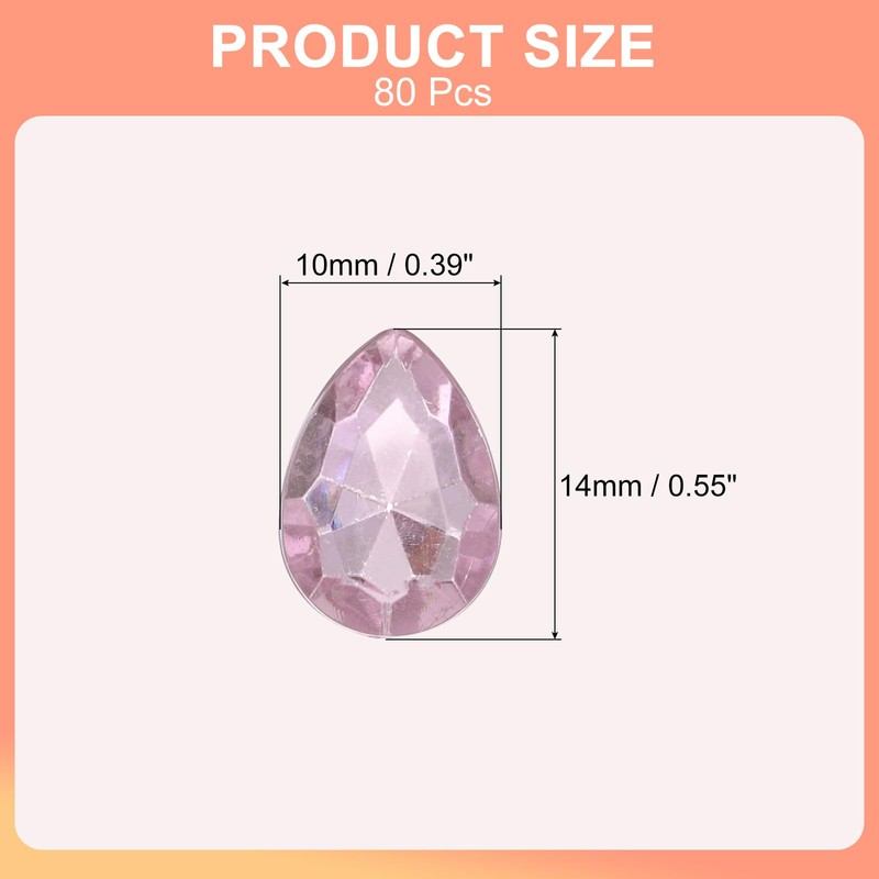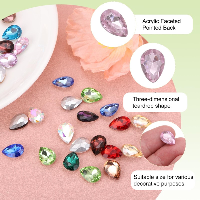 - Teardrop Crystal Rhinestone; Size:14x10mm/0.55x0.39inches(L*W); Material: Acrylic; In the Package: 80Pcs x Teardrop Point Back Rhinestone