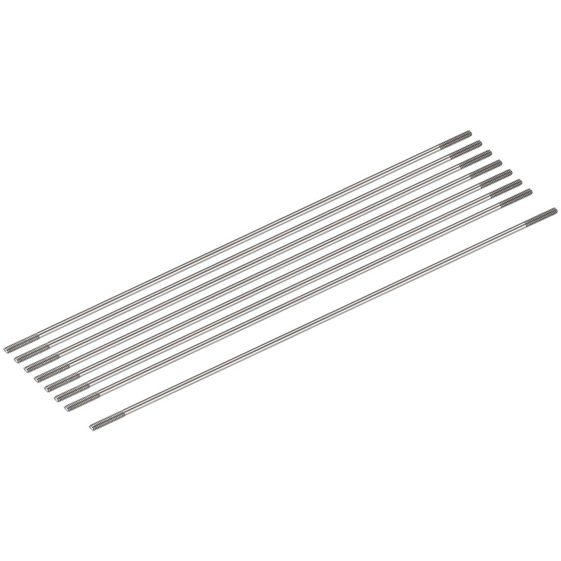 - Pushrod Connector,Color: Silver Tone;Material: 304 Stainless Steel;Total Length:130mm/5.12 inch;Diameter: 1.8mm/0.07 inch;Thread: M2;Length of Thread:10mm/0.39 inch;In the package of:8pcs x Double End Thread Stud Push Rod;