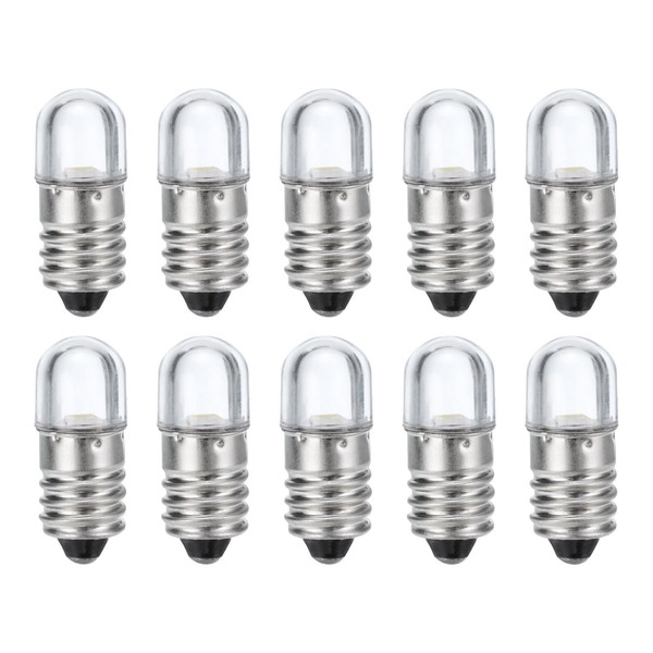 MECCANIXITY 9V/0.06A E10 Mini LED Light Bulbs, 10Pcs Miniature Screw Bulbs Flashlight Bulbs for Scientific Experiment Lighting DIY Accessories, Cold White Light