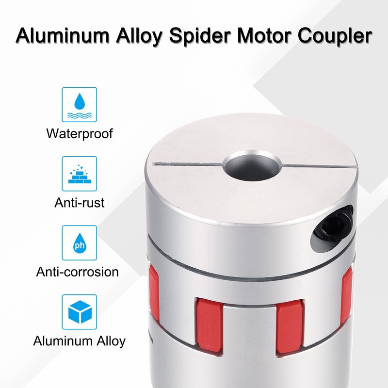 This durable motor coupler connector, crafted from aviation aluminum with high corrosion resistance, hardness, and precision, features an anodized surface treatment for enhanced strength and durability, optimal for motors, 3D printers, and DIY models. The Spider Material design is capable of absorbing vibrations and is suitable for large torque transmission and longer service life. Easy to install and suitable for a wide range of shaft sizes, making it perfect for various servo motor systems and CNC machines.