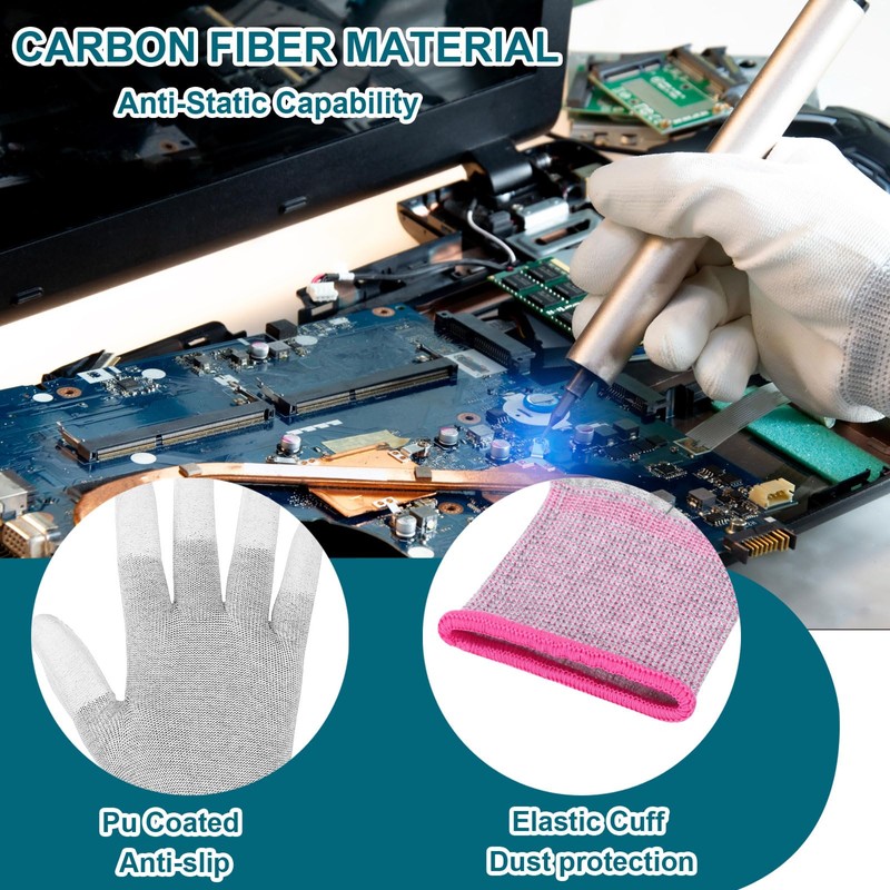- Anti-static gloves are suitable for installing and maintaining computers, mobile phones, electronic products, as well as for jewelry, laboratory, cleanroom use to prevent dust and debris entry