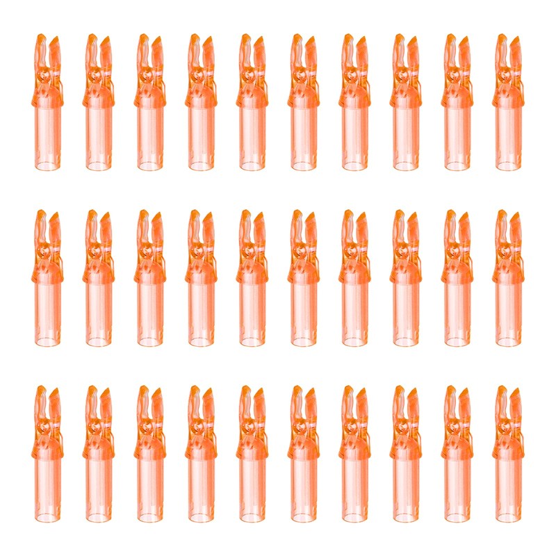 • The Archery Arrow Nocks, our provides here, are in size of 31x7 mm/1.2x0.244 Inch(LxD); Material: Plastic; Color: Transparent Orange; Packing List: 30 Pack x Archery Arrow Nocks
