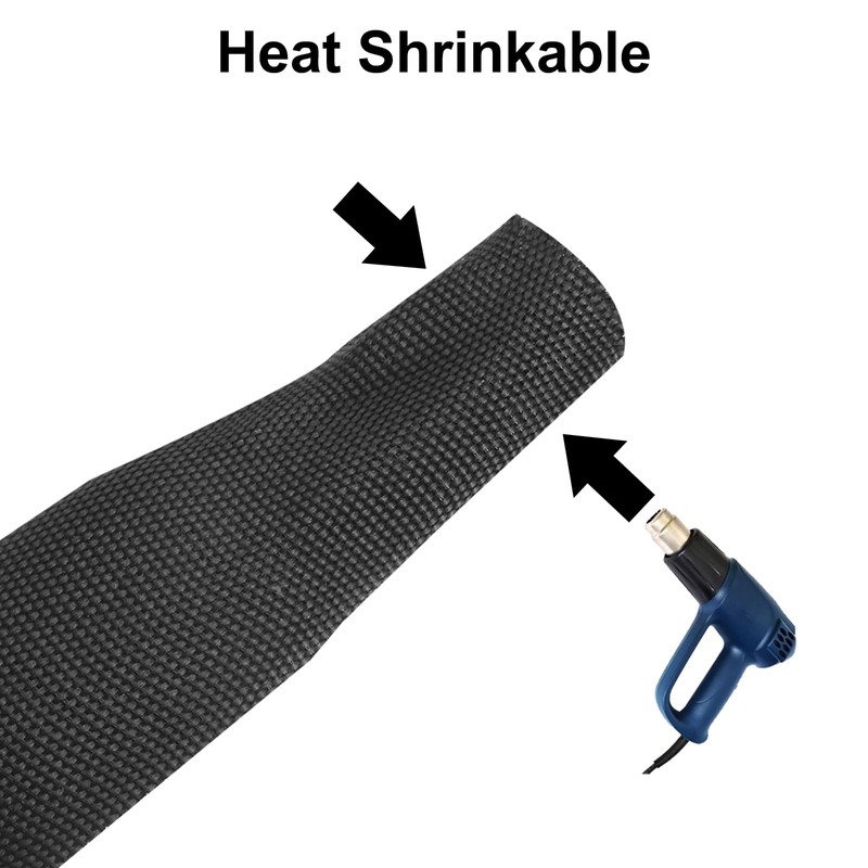 MECCANIXITY Braided Cable Sleeves, 2" 10ft Black, Heat Shrinkable Fabric Sleeving, 2:1 Ratio, Cable Protector, Management