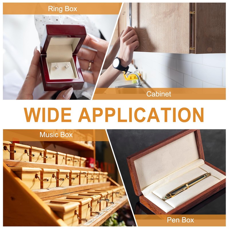 - These mini hinges for fastening wood boxes, trinket boxes, jewelry boxes, ring boxes, small woodworking projects, music boxes, pencil boxes, etc. make the furniture work perfectly