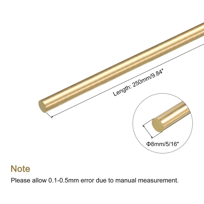- Pack of 1Pcs Brass solid round rod lathe bar stock. Length: 250mm/9.84 Inch; Diameter: 8mm/5/16 Inch