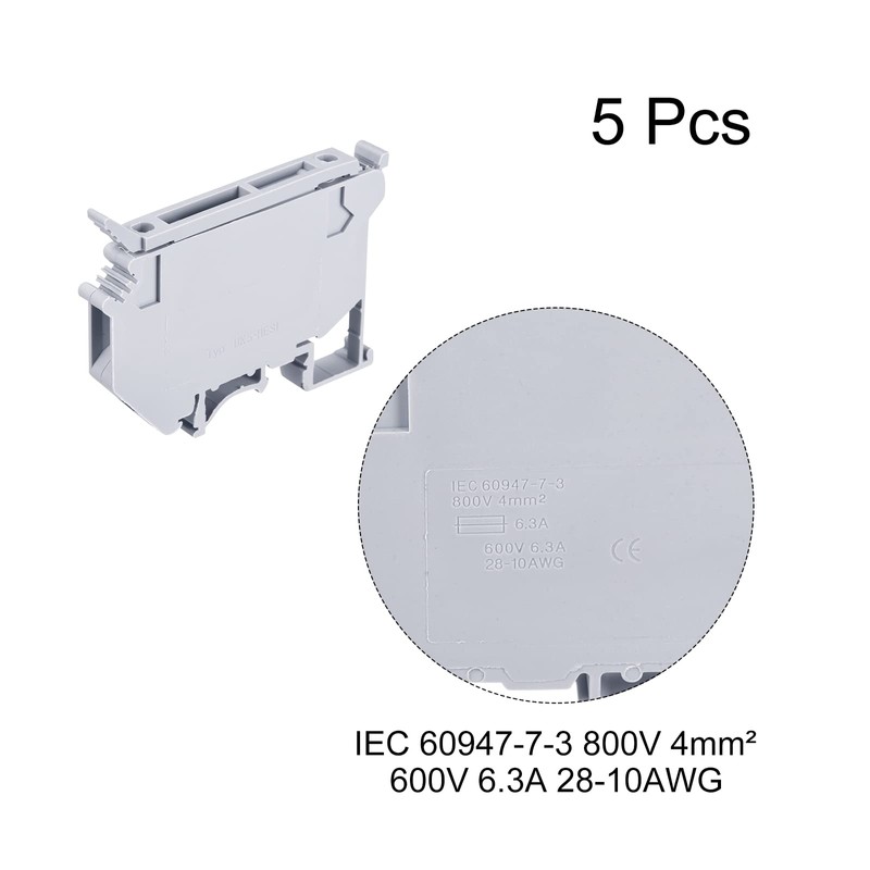 MECCANIXITY DIN Rail Mount Fuse Holder Terminal Blocks Grey UK5 LED24V Pack of 5