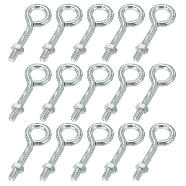 MECCANIXITY Eye Bolts M5x30 Carbon Steel Eye Hooks Screws with Hex Nuts for Metal Hook Wood Terminal Ring Hooks Hanging, Pack of 15