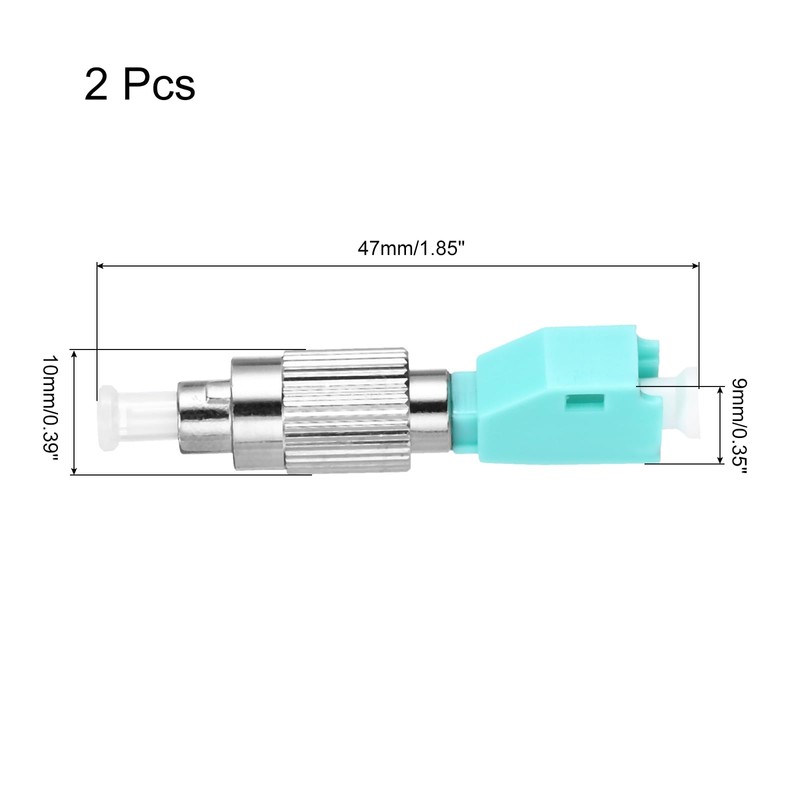 • Connector Type: FC Male to LC Female OM3; Fiber Type: Multi-Mode Simplex Adapter; Size: 47mmx10mmx9mm/1.85 inch x 0.39 inch x 0.35 inch (L*W*H); In the Package of: 2 Pcs x Fiber Optical Coupler