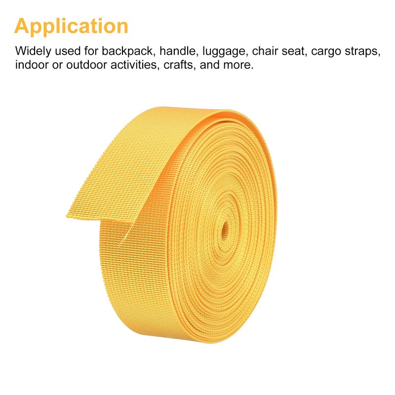 Flat nylon webbing strap is made of nylon material, is widely used for backpack, handle, luggage, chair seat, cargo straps, indoor or outdoor activities, crafts, and more.