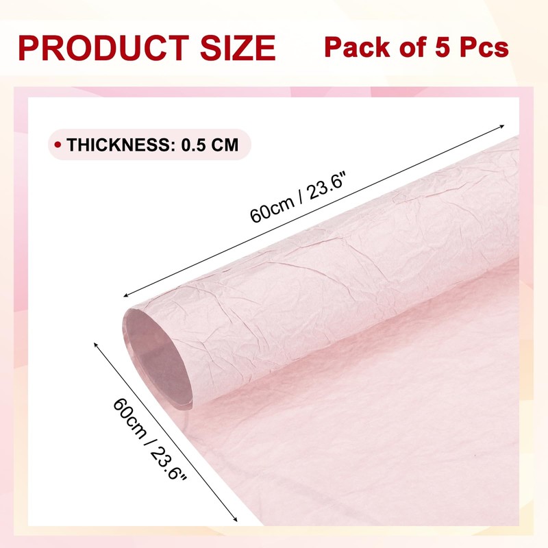 - The Gift Wrapping Paper, is in size of: 60 x 60cm/23.6 x 23.6 Inch; Color: Pale Pink; Material: Wood Pulp; Thickness: 0.5 cm; Fold Rate: 0.2%; In the package of: 5Pcs x flower wrapping paper