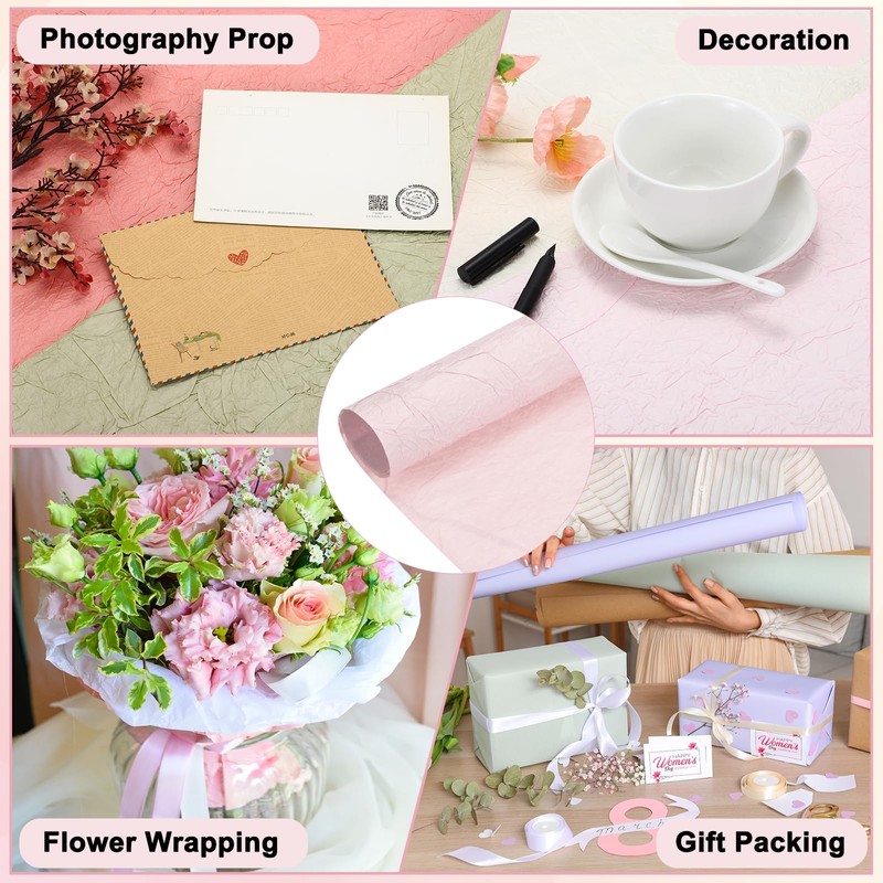 - This wrapping paper has a special pattern on the surface and a smooth back. It is thick and not easy to tear or fade, and can be freely cut. This handmade paper is versatile and can be used for both gift wrapping and as a backdrop for photography scenes. It is suitable for celebration events or special occasions such as weddings, anniversaries, wedding ceremonies, graduation ceremonies, birthday parties, gift packaging, gift boxes, and bouquet wrapping.