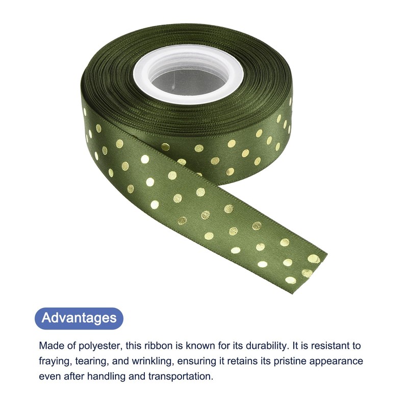 MECCANIXITY Grosgrain Ribbons 25 Yards 1 Inch Grass Green with Gold Dots Ribbon Bow Decoration for Crafts Gift Wrapping Wedding DIY Handmade