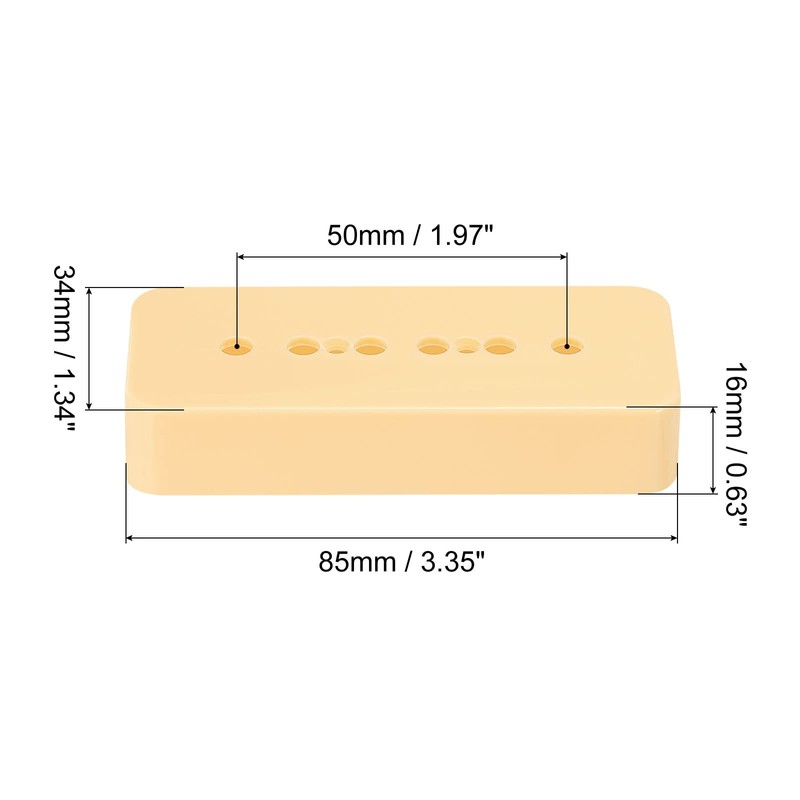 • guitar pickup covers, we provide here, are in the size of: Material: ABS; Model: P90; Color: Cream; Pole Spacing : 50mm / 1.97 inch; Size: 85*34*16mm / 3.35 x 1.34 x 0.63 inch (L*W*H)