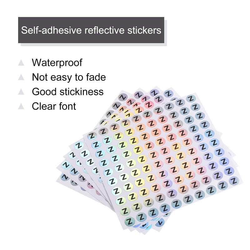 MECCANIXITY Laser Capital Letter Stickers (1000), 3/8" Alphabet Z Round Reflective Stickers for Inventory & Storage Organization
