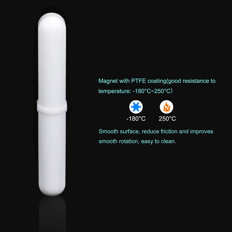 - The magnetic stir bar made from magnet with PTFE coating, the coating is corrosion resistant and has good resistance to high temperature(temperature tolerance range:-180 ℃~250 ℃)