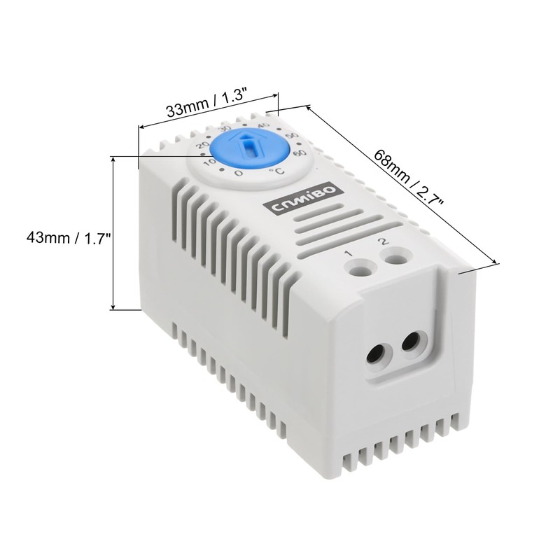 - Pack of 1 Mechanical Thermostat; Adjustable Temperature: 0℃-60℃; Power: 250V 10A; Size(L x W x H): Approx. 68 x 33 x 44 mm / 2.7 x 1.3 x 1.7 inch