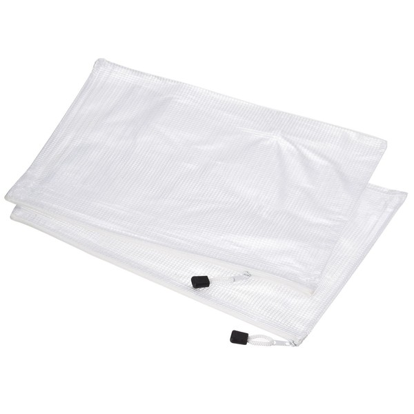 MECCANIXITY Mesh Zipper Bags, A3 Size Plastic Zip File Pouch Document Folders for Home Office Travel, White Pack of 3