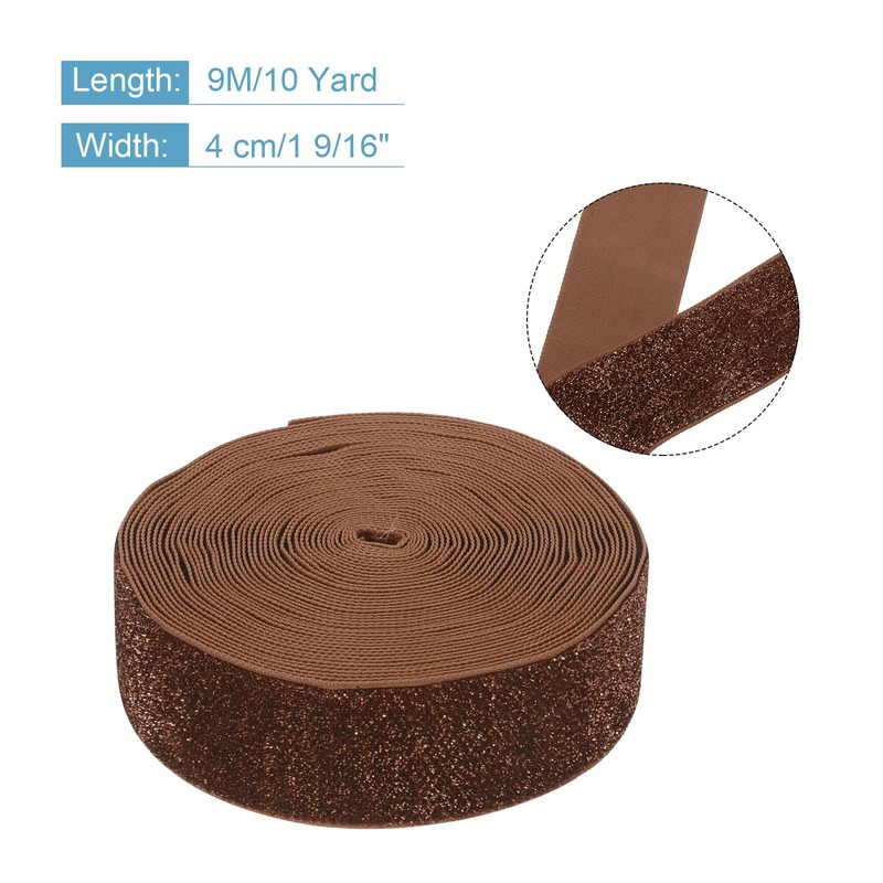 - The Velvet Ribbon, we provide here, is in the size of: Length: 9M/10 Yard. Width: 4 cm / 1 9/16". Color:Brown. Material: Velvet. In the package of: 1 Roll x Bow Ribbon with Gold Powder