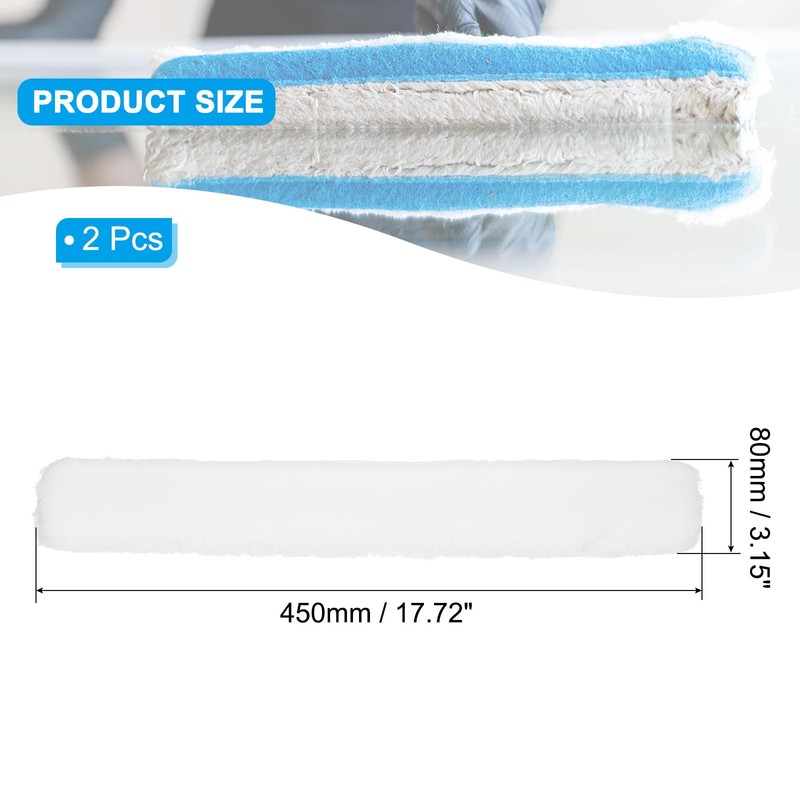 - The microfiber replacement head we provide here are in the size of: Overall Length: 450mm / 17.72 inch; Overall Width: 80mm / 3.15 inch