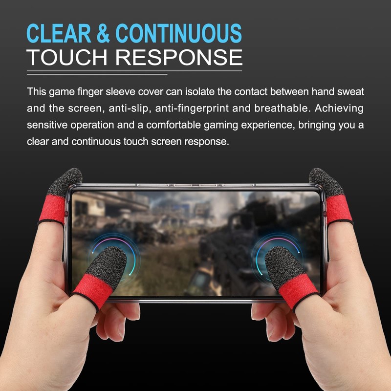 - This game finger sleeve cover can isolate the contact between hand sweat and the screen, anti-slip, anti-fingerprint and breathable. It can improve the game control experience and avoid operation errors. Achieving sensitive operation and a comfortable gaming experience, bringing you a clear and continuous touch screen response.