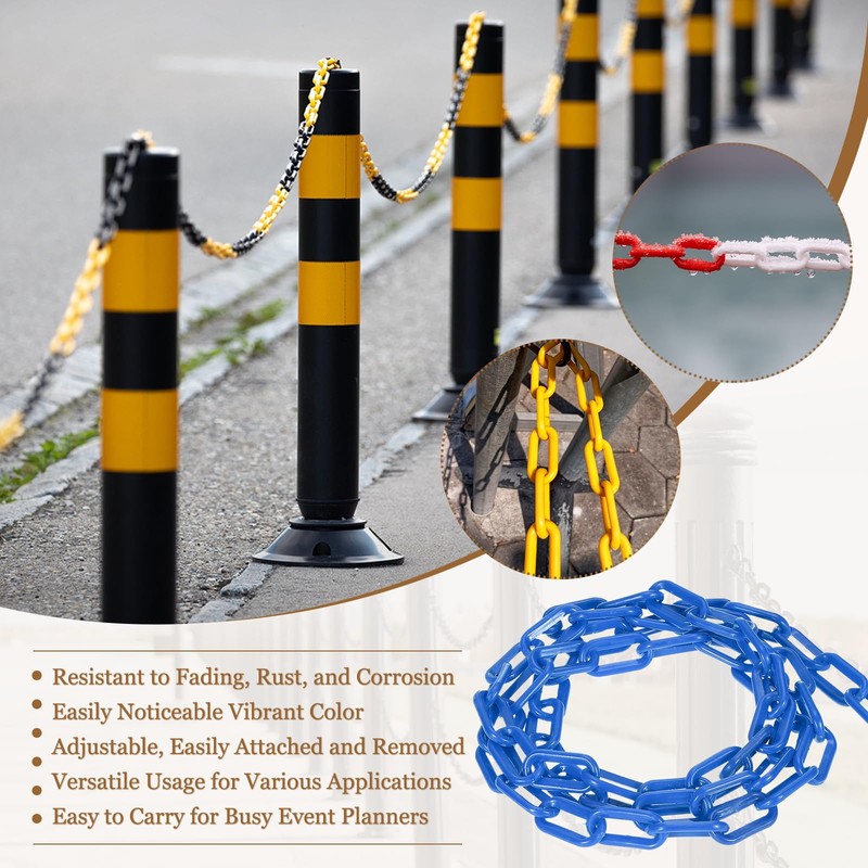 - Made of high-density weather-resistant polyethylene, not easily rust or fade under prolonged use in the hot sun or humid weather conditions. Bright and high-visibility colors make the chain eye-catching and easy to note. Ease to use, ensuring a flexible solution for your crowd control needs
