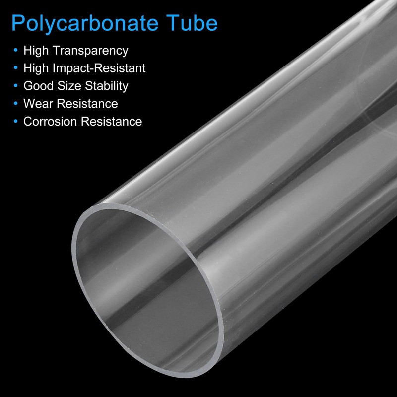 - With high transparency, the transparent PC (polycarbonate) tube has strong light transmission when used in lamps and lanterns. When it is used for liquid transportation, the flow of liquid in the tube can also be clearly seen. Transparent PC tube is widely used for lamps and lanterns, water cooling system, building materials, handicrafts, DIY, and so on.