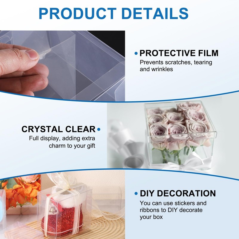 - The plastic gift boxes are multipurpose function, it not only can be used as an ornament or decorative box, to store small stuffs for Christmas, birthday and wedding party, but also can be used as a jewelry storage box, to exhibit your trinkets, ring, hair ties and clips and so on.