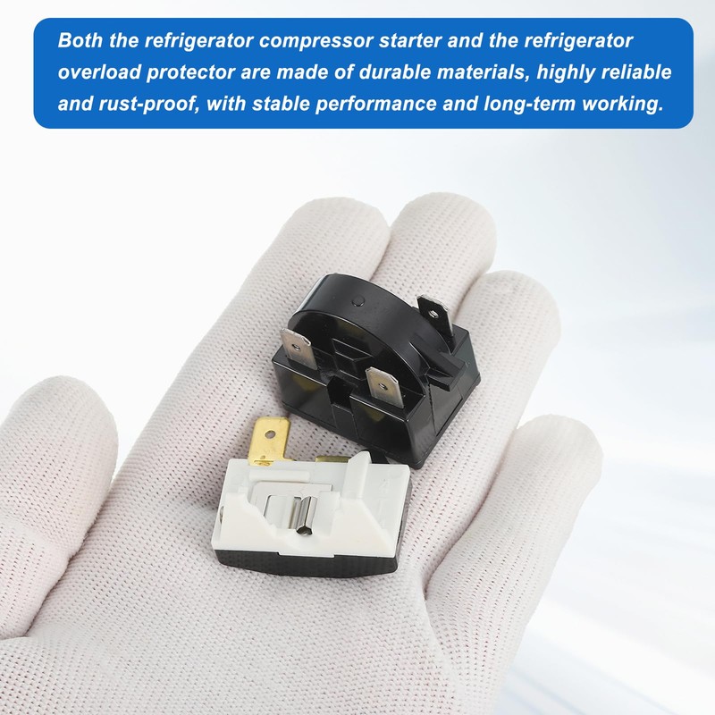 Both the refrigerator compressor starter and the refrigerator overload protector are made of durable materials, highly reliable and rust-proof, with stable performance and long-term working. They are also easy to install for direct replacement, cut down your time and energy. They can work normally and restore the cold air of the refrigerator. The refrigerator overload protector can prevent the compressor in the refrigerator from overheating and effectively protect your refrigerator.