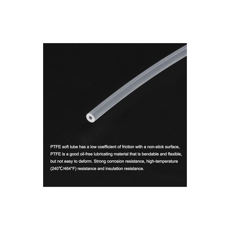 • PTFE soft tube has a low coefficient of friction with a non-stick surface, PTFE is a good oil-free lubricating material that is bendable and flexible, but not easy to deform. Strong corrosion resistance, high-temperature(240℃/464°F) resistance and insulation resistance.