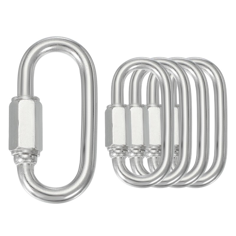 MECCANIXITY Quick Links M5 1.97 Inch Stainless Steel Chain Connector Large Opening Screw Chain Link D Shape Locking Looks for Hammock Camping and Outdoor Equipment Pack of 5