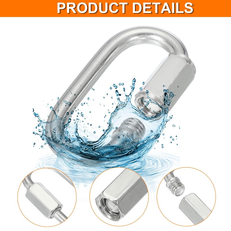 - Chain Quick Links are made of 304 stainless steel, no rust, no burrs, weatherproof, with strong wear resistance, corrosion resistance, and deformation resistance, and can still be used with confidence in wet environments.