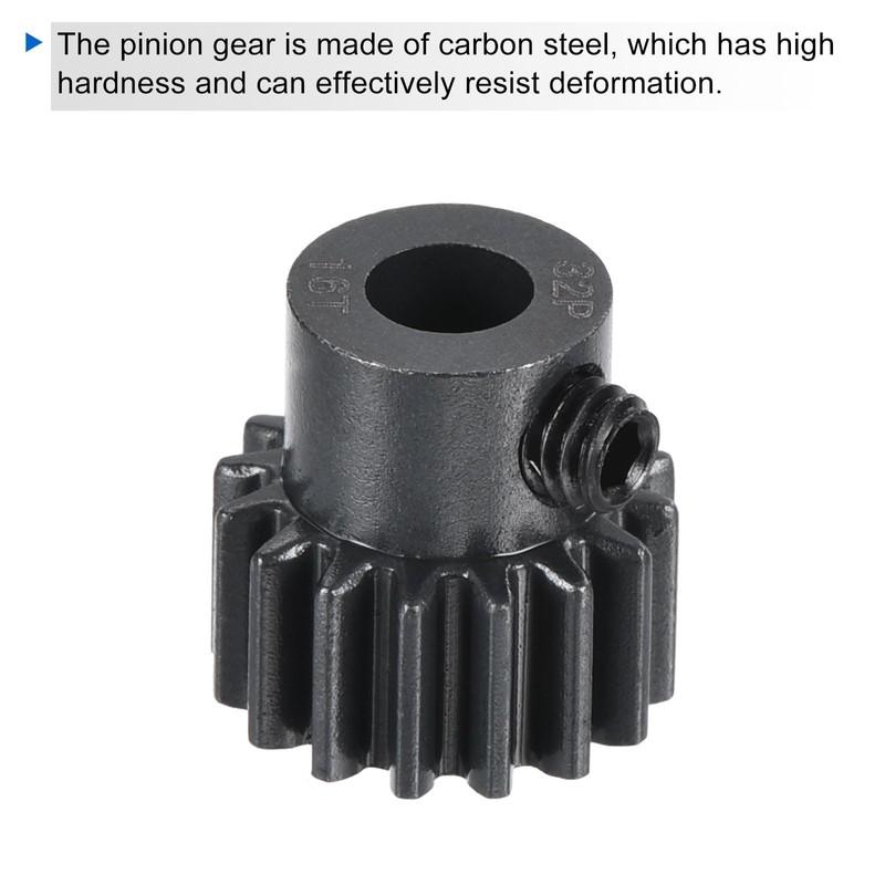 - The pinion gear is made of carbon steel, which has high hardness and can effectively resist deformation. It provides smoother and more efficient power transfer from the motor, resulting in improved acceleration and top speed.