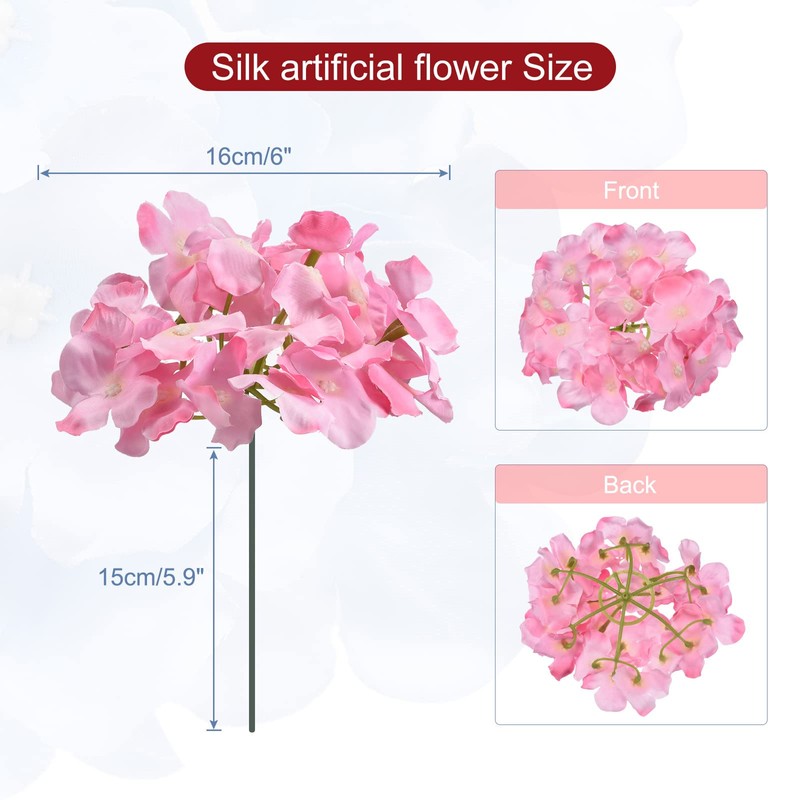 The hydrangea flower, in size of: Flower Head Diameter: 16cm/6 inch(approx.); Stem Length: 15cm/5.9 inch(approx.); Color: Pink