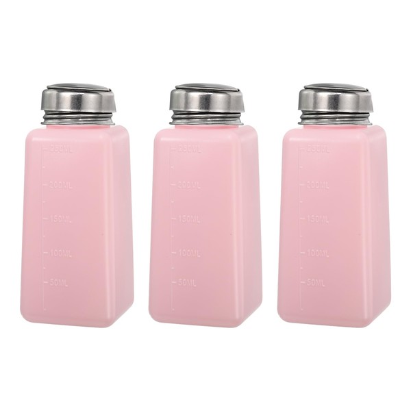 MECCANIXITY Solvent Alcohol Dispenser 250ml/8.5oz Pink Push Down Liquid Dispenser Pump for Acetone Cleanser Polish Remover Makeup 3Pcs