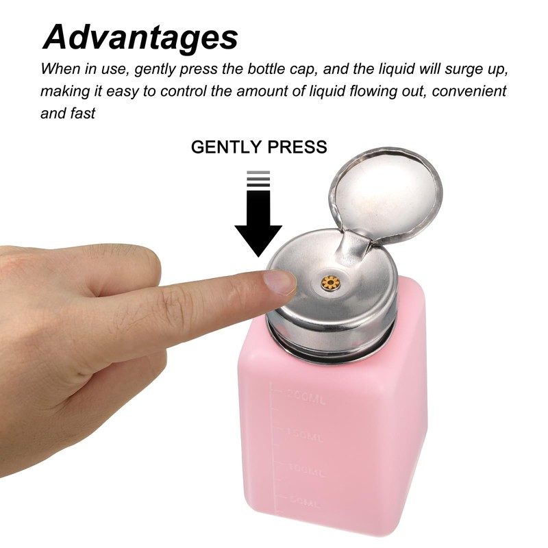 - The push-type alcohol bottle is made of thickened plastic material, which is acid-resistant and corrosion-resistant. Plastic push-down dispensers are good for alcohol, acetone, skin care products water emulsion essence, cleanser, nail polish remover, makeup remover and more.