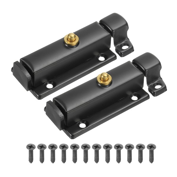 MECCANIXITY Spring Loaded Latch Pin 2.87 x 1.18 Inch Door Safety Slide Lock with Button Internal Door Bolt Latch Sliding Lock Barrel Bolt with Screws Furniture Cabinet Black, Pack of 2