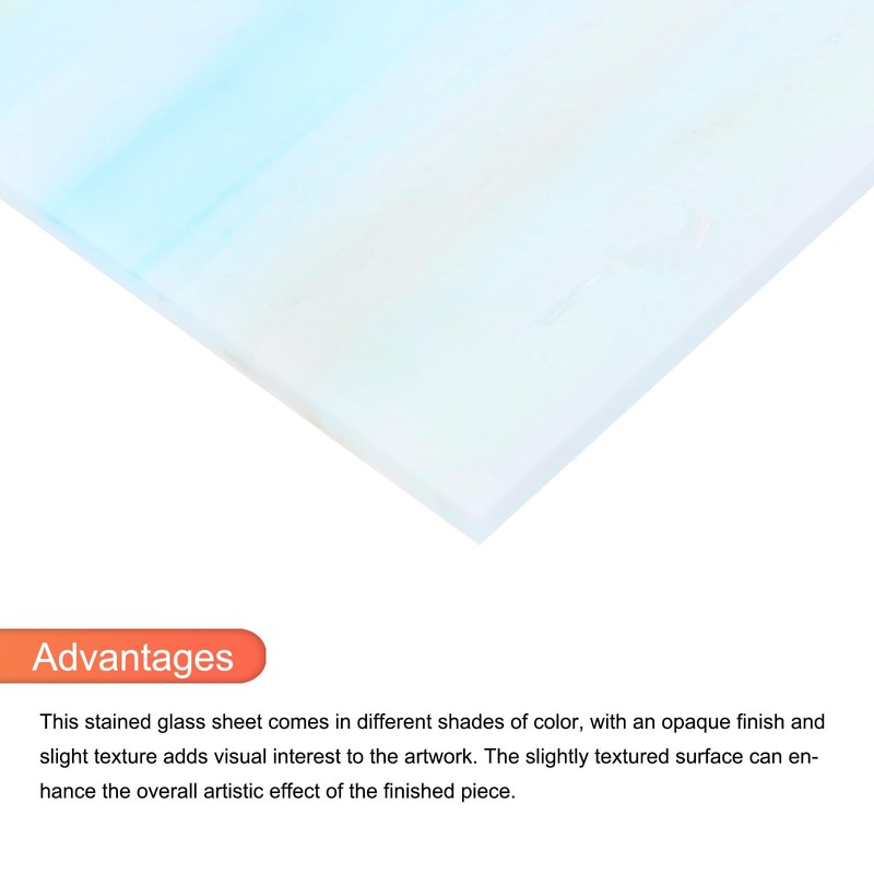 - This stained glass sheet comes in different shades of color, with an opaque finish and slight texture adds visual interest to the artwork. The slightly textured surface can enhance the overall artistic effect of the finished piece.