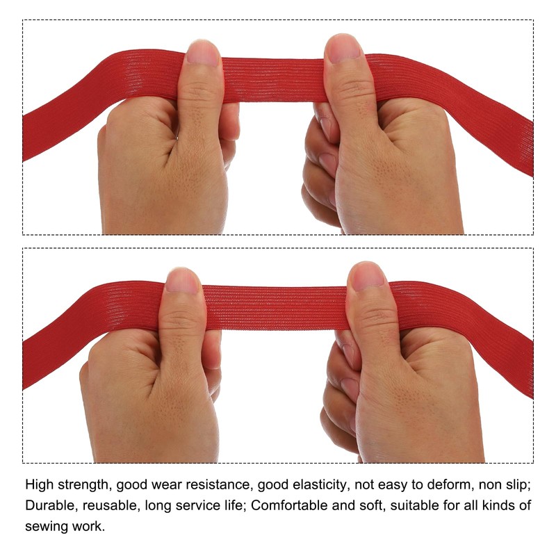 - Elastic band, with good elasticity, is mainly used for various sewing, such as sewing pants, T-shirt, skirts, dresses, etc. It can also be used for headbands, wigs, waistband, etc.