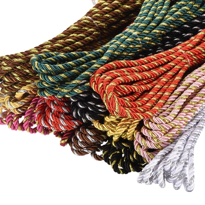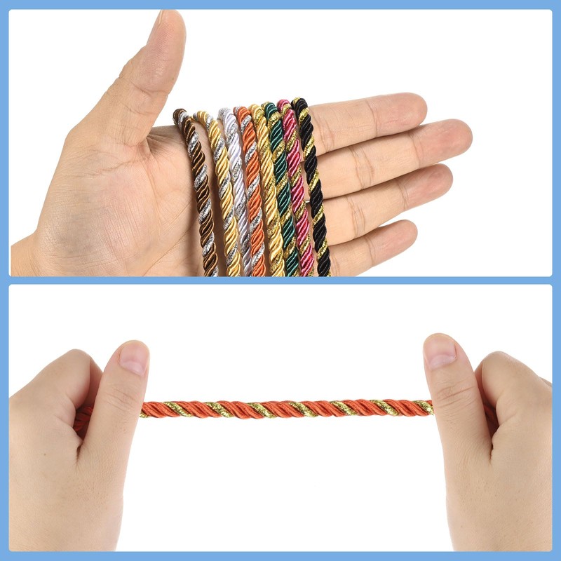 - 3-Ply polyester braided rope, strong wear resistance, durable, not easy to wear, especially suitable for holiday gift bag decoration, home decoration, clothing decoration, etc. Twisted cord rope, easy to disassemble and replace, easy to use, soft and comfortable, providing convenience for daily life; Twisted cord string, is in rich colors, can meet different decoration styles and needs