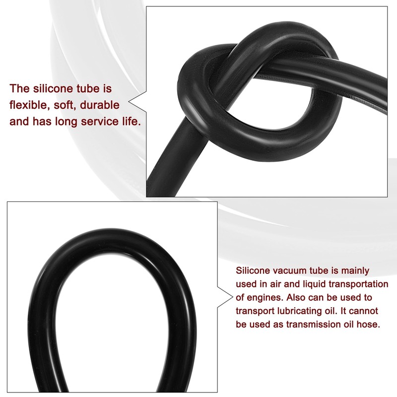 Silicone vacuum hose, is in size of : 3mm(1/8 inch) 4mm(5/32 inch) 5mm(3/16 inch) 6mm(1/4 inch) 8mm(5/16 inch) inner dia, 3mm(1/8 inch) wall thickness, 2m/6.6ft total length, -60°C to 200°C(-76°F to 392°F) working temperature
