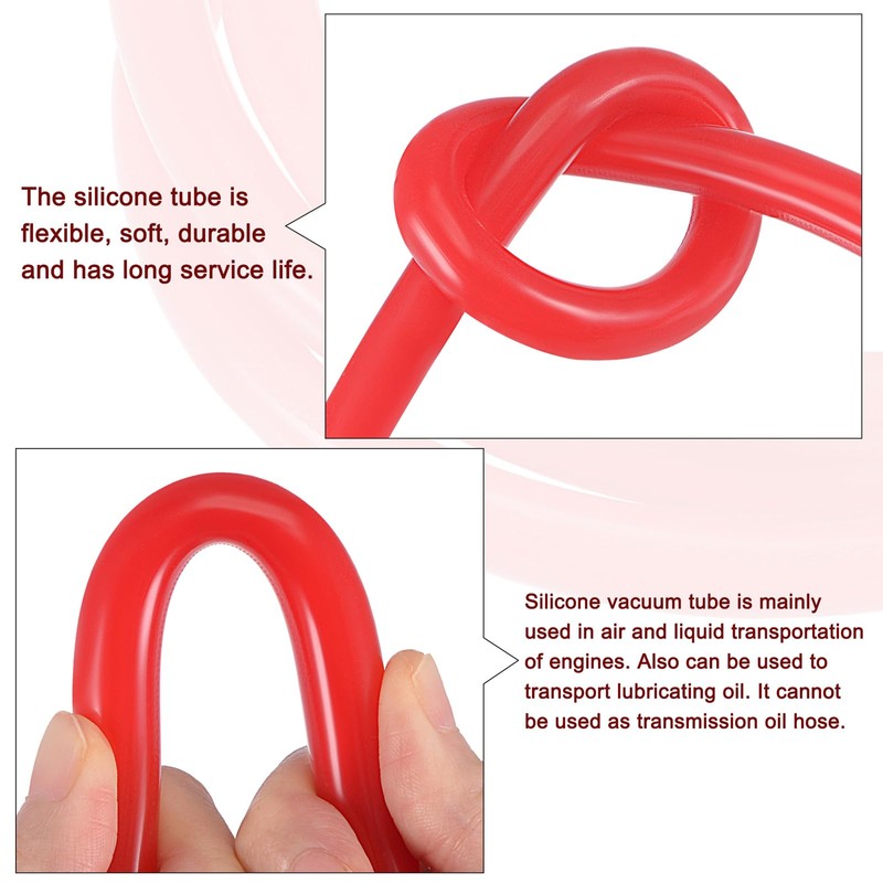 - Silicone vacuum tubing is mainly used in air and liquid transportation of engines. Also can be used to transport fuel oil, lubricating oil.