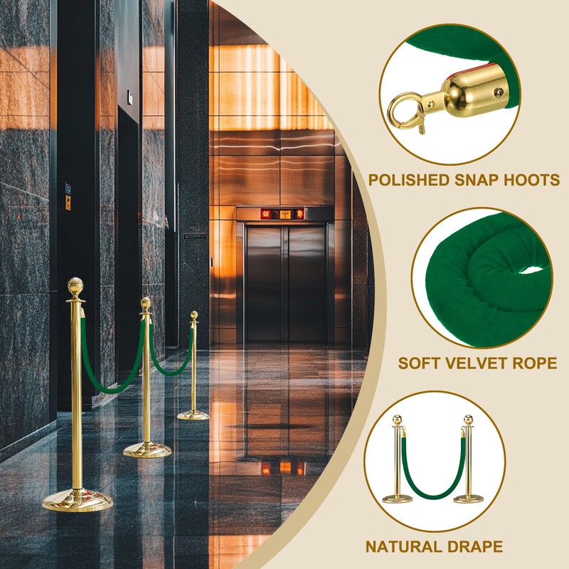 - The velvet rope barrier we provide here is the length: 1 Meters / 3.28 inches, width: 30 mm / 1.2 inches, color: green rope, golden buckle; In the package of: 2 x Stanchion Rope