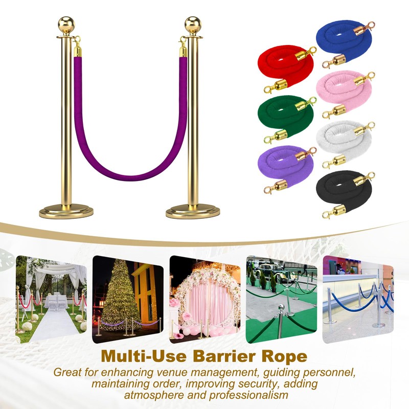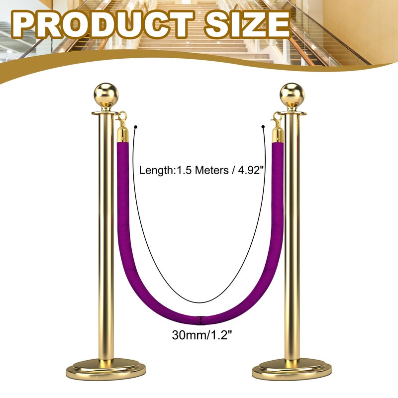 - The velvet rope barrier we provide here is the length: 1.5 Meters / 4.92 inches, width: 30 mm / 1.2 inches, color: purple rope, golden buckle; In the package of: 1 x Stanchion Rope